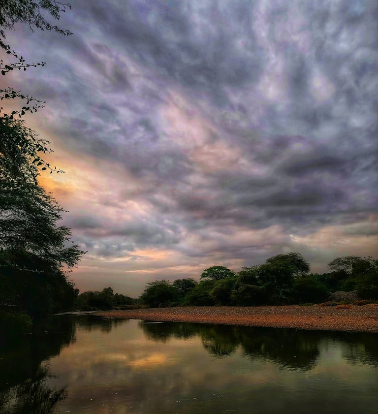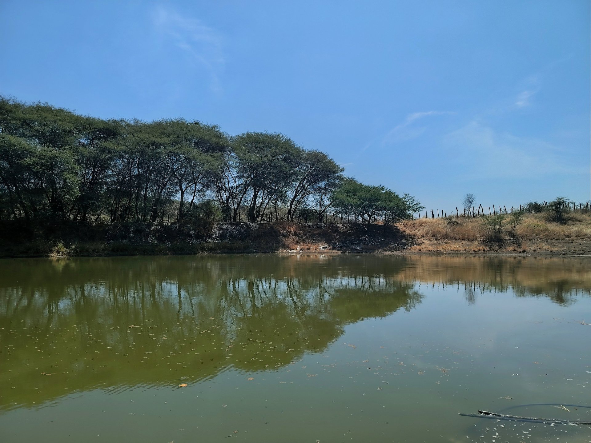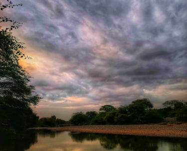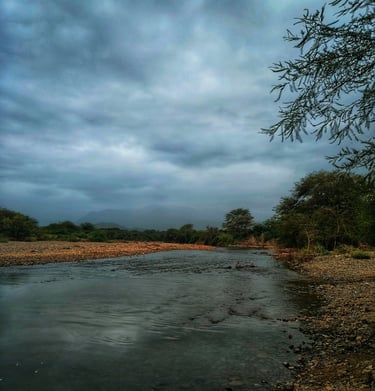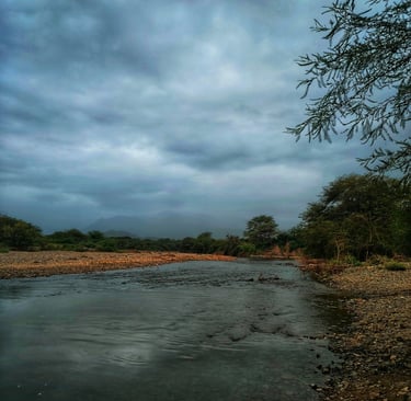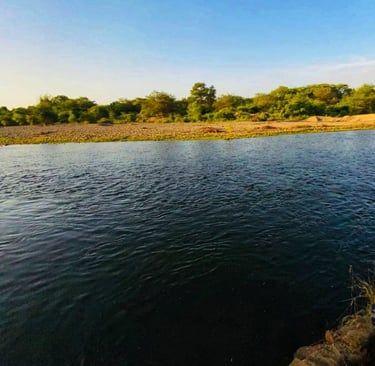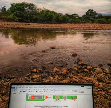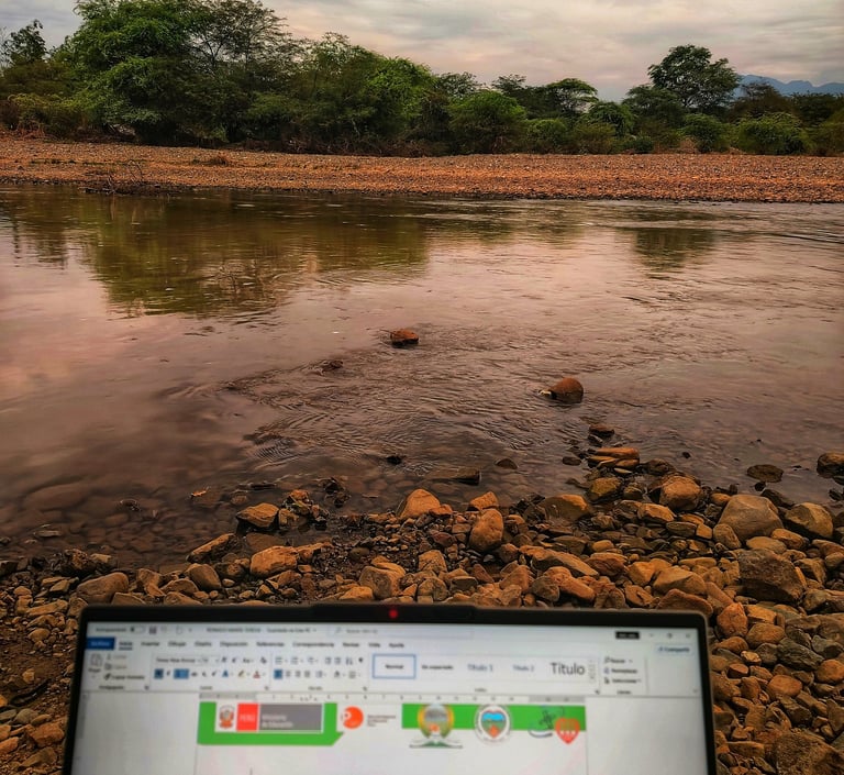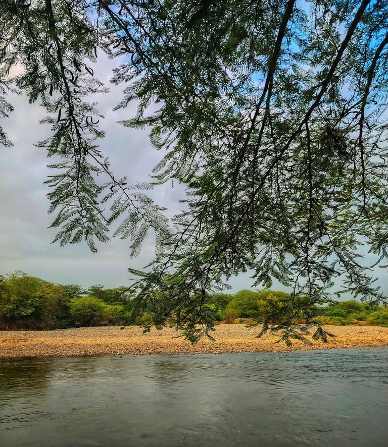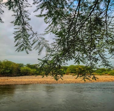 En el caserío de Tejedores, el río corre como una vena de plata que alimenta la tierra y refresca el alma. Sus aguas limpias bajan tranquilas, reflejando el cielo piurano y dando vida a chacras, animales y familias que han aprendido a convivir con su cauce generoso.